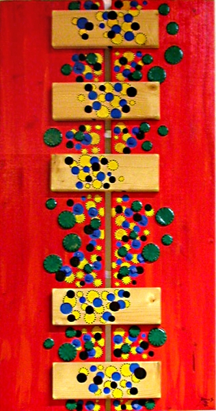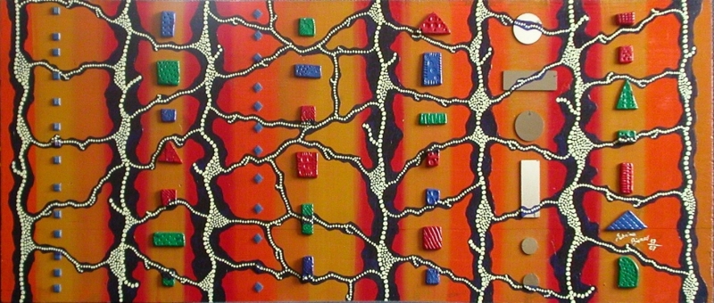 collages ottenuti con applicazioni di materiali disparati, oggetti e ricordi, a creare fantasie quadri-dimensionali, dove il tempo è parte attiva/passiva della composizione |