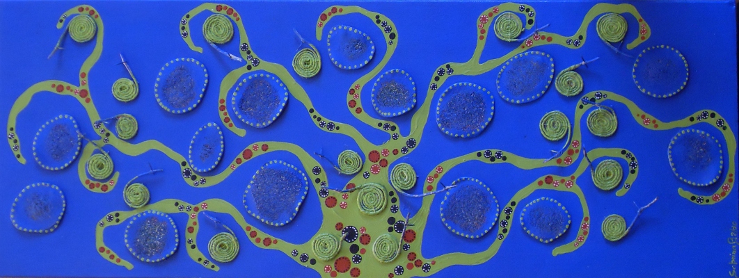 collages ottenuti con applicazioni di materiali disparati, oggetti e ricordi, a creare fantasie quadri-dimensionali, dove il tempo è parte attiva/passiva della composizione |