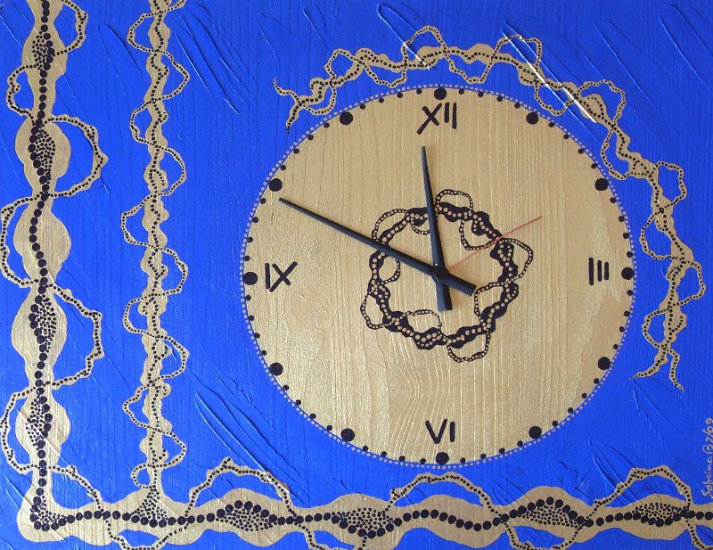 Orologi dipinti a mano su pannelli in legno, soggetti astratti o classici, sovente ispirati a forme art nouveau mescolate all'arte aborigena |
